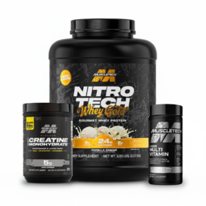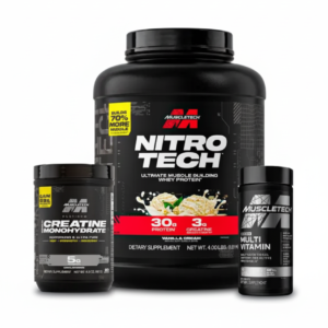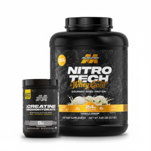 COMBO NITRO TECH WHEY GOLD 5 LIBRAS + CREATINA PLATINUM 80 SERVICIOS + MULTIVITAMÍNICO PLATINUM