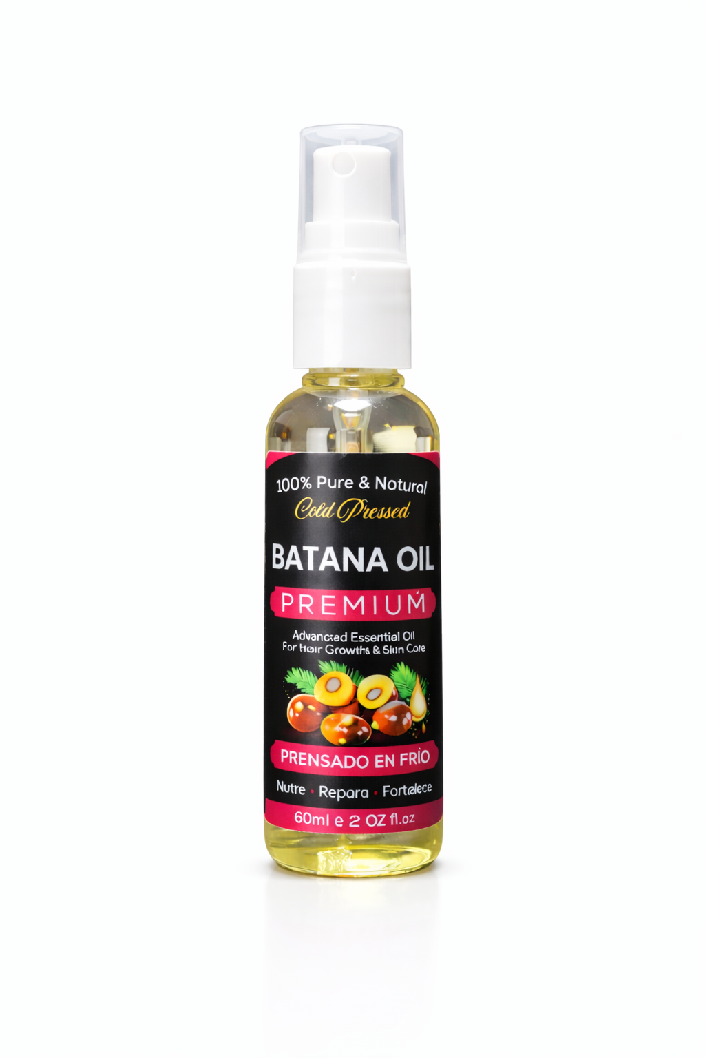 ACEITE DE BATANA PREMIUM 60 MLPrensado en fr o 100 puro y naturalEl aceite de batana es un tesoro natural conocido por su poder reparador y nutritivo Extra do mediante prensado en fr o para conservar todas sus propiedades este aceite est dise ado para transformar tu cabello y revitalizar tu piel desde la primera aplicaci n Qu hace por ti Estimula el crecimiento del cabello Fortalece la fibra capilar desde la ra z Repara puntas abiertas y cabello maltratado Reduce el frizz y aporta brillo natural Hidrata profundamente cuero cabelludo y pielSu f rmula rica en cidos grasos y antioxidantes ayuda a restaurar el cabello seco d bil o quebradizo devolvi ndole suavidad fuerza y apariencia saludable Textura ligera f cil absorci n y sin sensaci n grasosa excesiva Ideal para todo tipo de cabello Contenido 60 mlUso capilar y cosm tico