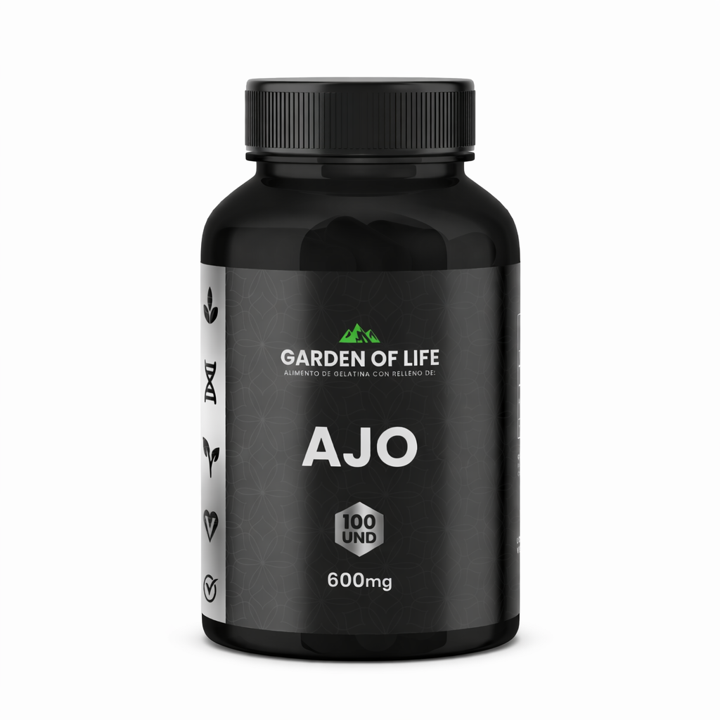 AJO Garden of Life 600 mg Beneficios principalesFortalece el sistema inmunol gico ayudando a las defensas naturales del organismo Contribuye a la salud cardiovascular apoyando una mejor circulaci n sangu nea Reduce el colesterol malo LDL y ayuda a mantener niveles saludables de l pidos Apoya a regular la tensi n arterial favoreciendo la presi n sangu nea normal Potente antioxidante combate el estr s oxidativo Propiedades antimicrobianas ayuda a combatir bacterias y microorganismos Apoya la salud digestiva favoreciendo una digesti n m s ligera y equilibrada ContraindicacionesNo se recomienda su consumo en los siguientes casos Personas al rgicas al ajo o a alguno de sus componentes Mujeres embarazadas o en periodo de lactancia sin autorizaci n m dica Personas que consumen anticoagulantes o antiagregantes plaquetarios ya que el ajo puede potenciar su efecto Antes de cirug as suspender su consumo al menos 7 d as antes Si presenta molestias g stricas persistentes suspender y consultar al m dico Modo de uso recomendadoPara una mejor adaptaci n del organismo y evitar molestias Semana 1 Tomar 1 softgel al d a con comida preferiblemente en la noche Desde la semana 2 Tomar 2 softgels al d a 1 con las comidas principales o 2 en la noche seg n tolerancia presentaci n frasco oscuro de 360cc con tapa negra de presi n americana termosellado de seguridad informaci n de uso en etiqueta tabla nutricional componentes pol tica de garant a Garant a dentro de los 10 d as primeros d as de recibido el producto no se aceptan devoluciones despu s de manipular el producto destaparlo usarlo y deterioro o da o de su presentaci n por mal uso al presentar alg n inconveniente con nuestros productos se puede comunicar a la lineal 3125791756 uno de nuestros colaboradores lo guiaran con el proceso requerido
