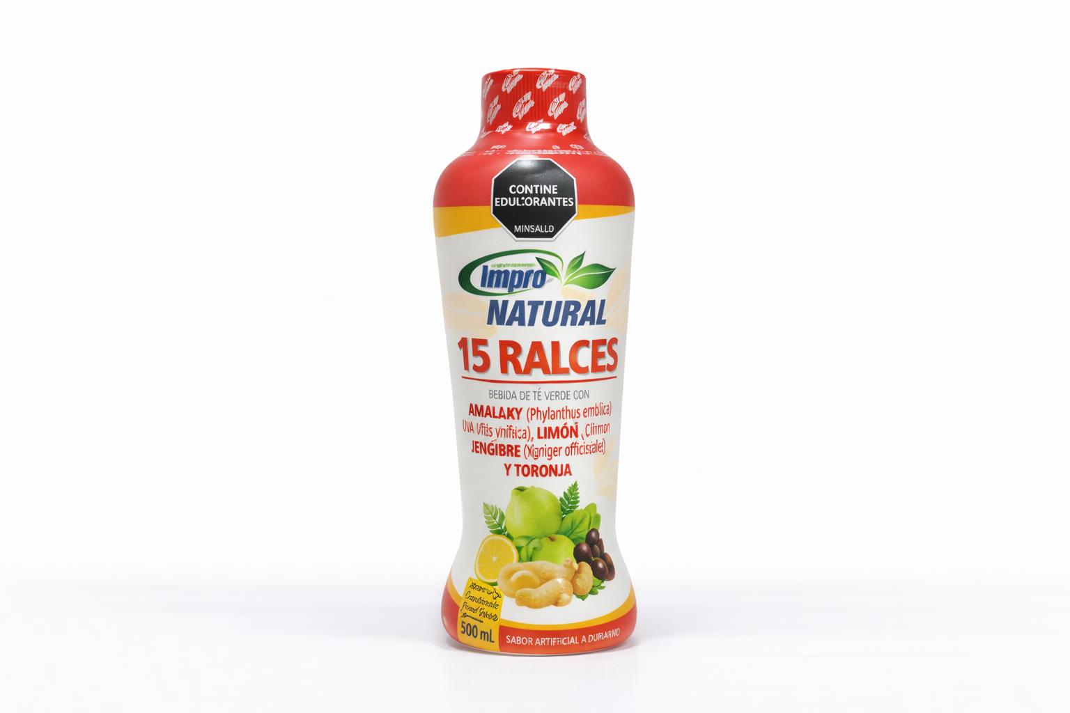 15 Raíces de Impro Natural es una bebida funcional formulada con una poderosa combinación de extractos naturales y frutas como amalaki, jengibre, limón, toronja y uva, diseñada para fortalecer el organismo, aportar energía natural y apoyar el sistema inmunológico. Su fórmula integra ingredientes reconocidos por sus propiedades antioxidantes, digestivas y revitalizantes, convirtiéndolo en un complemento ideal para el bienestar diario.