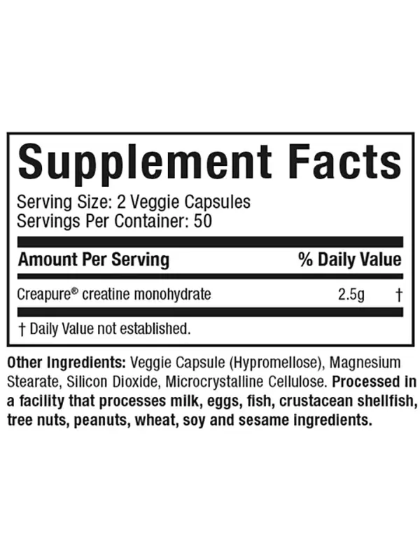 Es un suplemento elaborado con creatina monohidratada pura, presentado en cápsulas de rápida absorción. Su fórmula respalda el desarrollo muscular, la fuerza y la resistencia, facilitando su consumo en cualquier momento del día como una opción cómoda y efectiva.