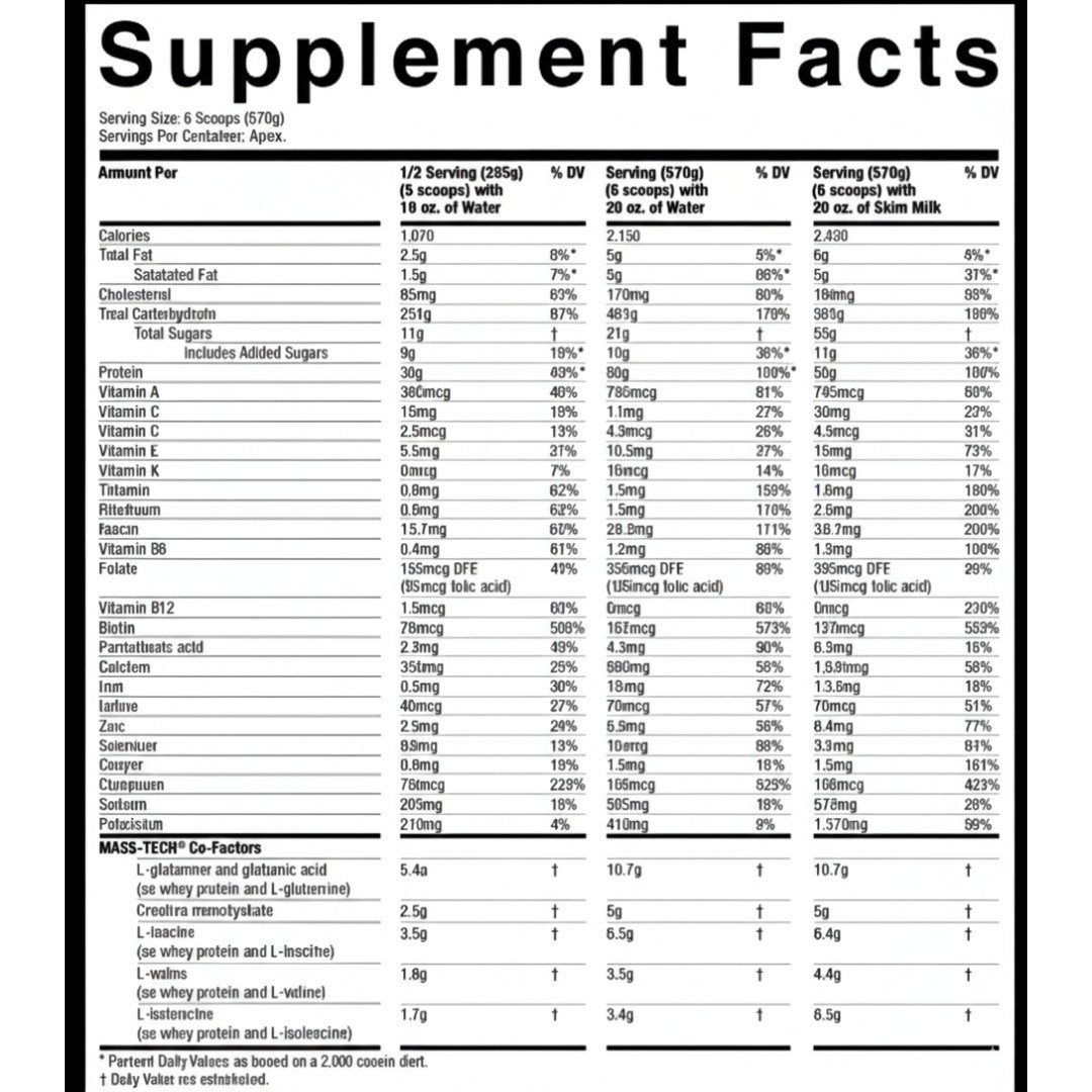 Mass Tech Extreme de Muscletech es un suplemento deportivo que contribuye a incrementar las calorías de la dieta, con el fin de aumentar el peso y la masa muscular. Este complemento alimenticio se basa en una combinación de hidratos de carbono, proteínas y grasas junto con BCAA's y glutamina.