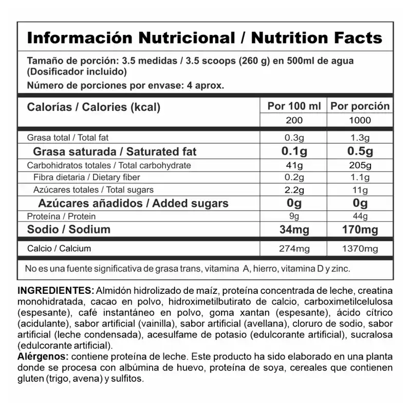 Megaplex Special Edition, es la mejor proteína hipercalórica de suero de leche con caseína, que incluye en su innovadora fórmula, 44 g de Proteína, 3.000 mg de Creatina Monohidrato, 500 mg de HMB, BCAA y 1.000 calorías por porción y fuentes de carbohidratos con diferentes velocidades de absorción. La Edición Limitada está compuesta 100% por proteínas lácteas y no contiene azúcares adicionados. Además, Incluye 21% más de contenido para que disfrutes su delicioso sabor a Cookies & Cream.