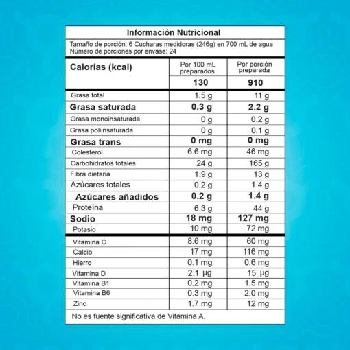 -Mezclar 6 cucharadas medidoras (246 g) en 700 ml de agua