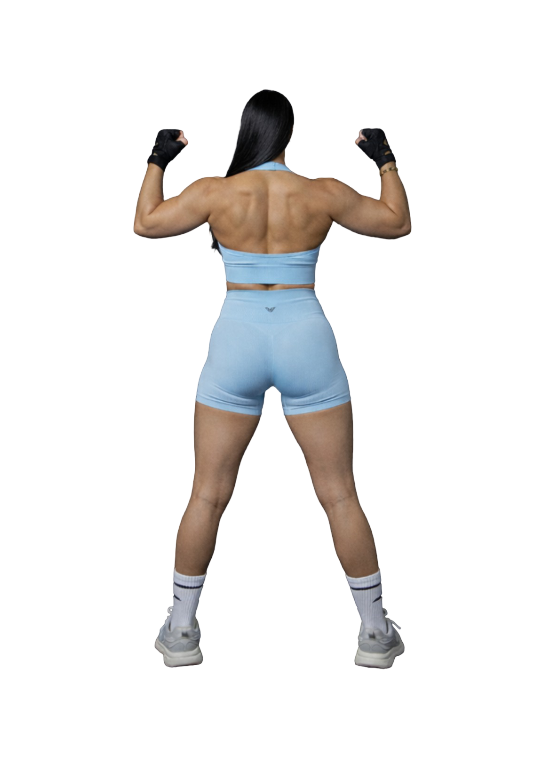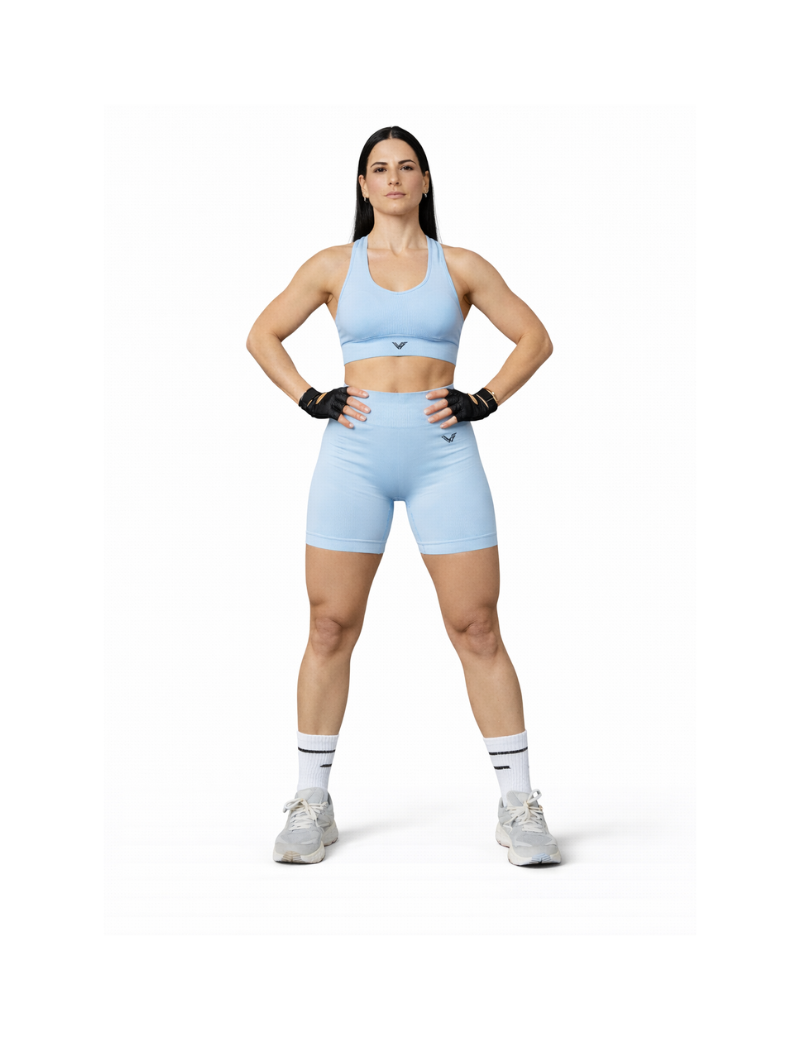 El short de tiro alto complementa el conjunto al brindar un ajuste que estiliza la zona abdominal y se adapta al cuerpo de forma natural. Su estructura ayuda a definir la silueta y a realzar las curvas, manteniéndose en su lugar durante el movimiento sin generar incomodidad. La tela es suave, elástica y transpirable, lo que permite mantener la frescura y comodidad incluso en entrenamientos exigentes.