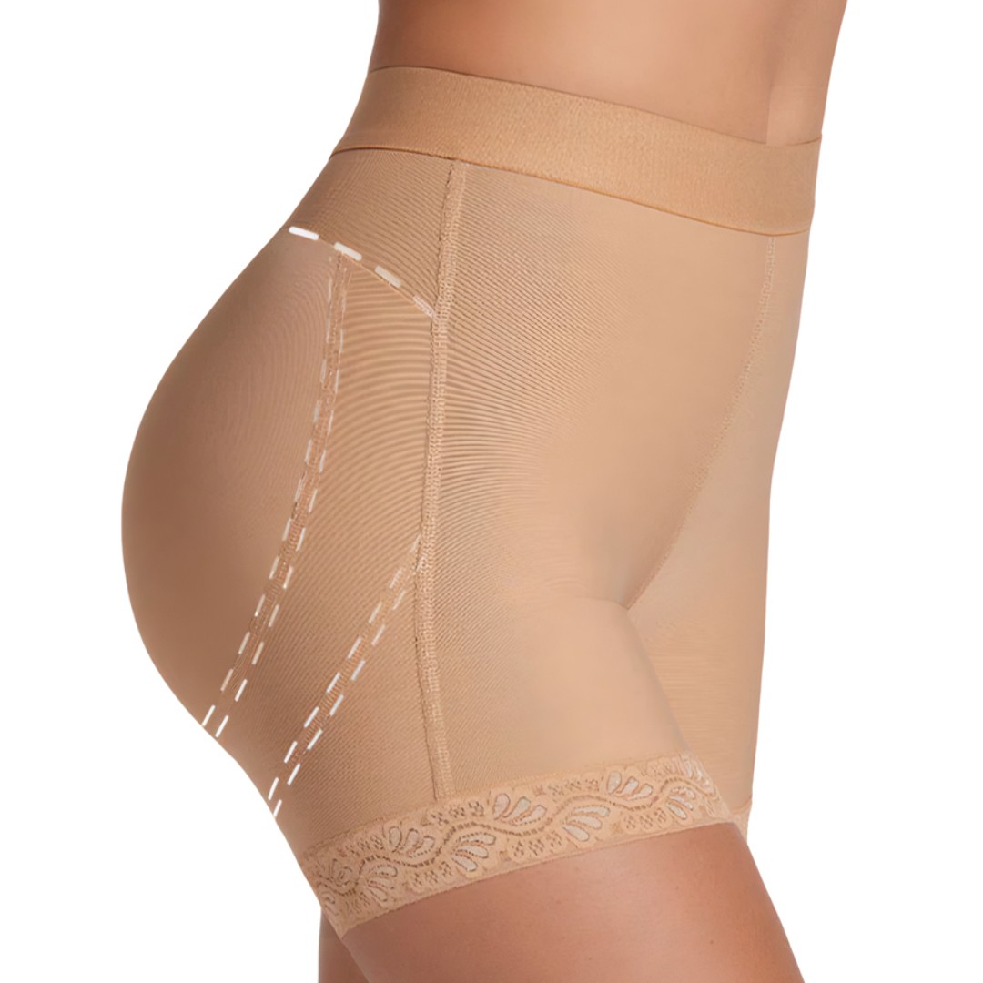 Faja moldeadora tipo short con efecto levanta cola, diseñada para realzar los glúteos de forma natural, controlar el abdomen y definir la cintura. Es la prenda perfecta para quienes buscan comodidad, soporte y una silueta más estilizada en segundos.