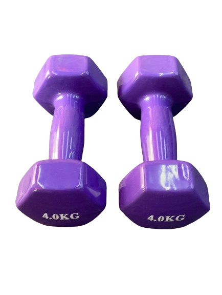 Mancuerna individual de 4 kg elaborada en hierro fundido con recubrimiento en goma vinílica antideslizante. Diseñada para entrenamiento de fuerza, tonificación muscular y acondicionamiento físico en casa o gimnasio.