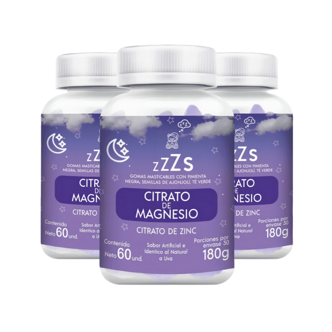 Gomitas masticables formuladas con una mezcla funcional de Citrato de Magnesio, Citrato de Zinc, extracto de Té Verde, Pimienta Negra y otros activos naturales. Diseñadas para adultos que buscan una forma práctica y agradable de apoyar sus rutinas nocturnas y de bienestar.