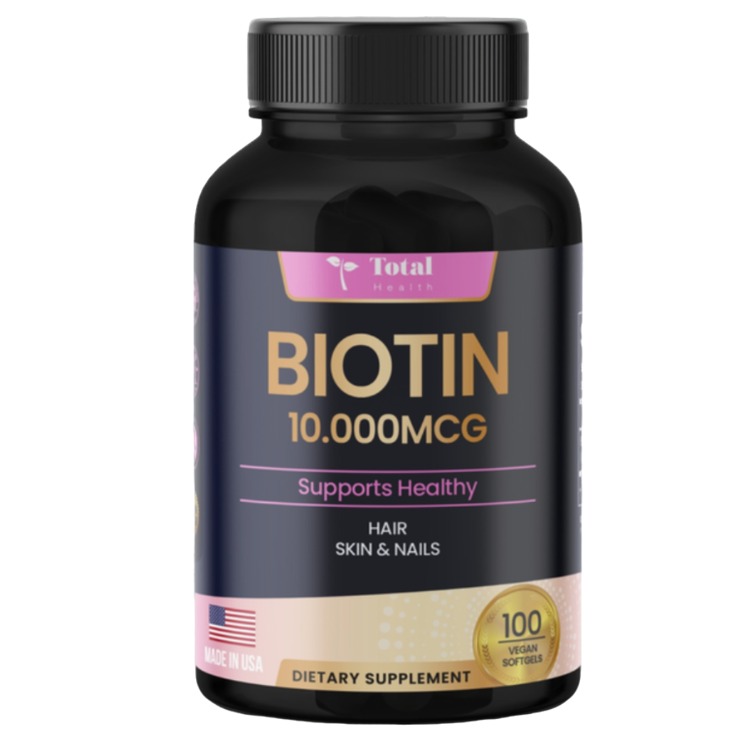 La Biotina 10.000 mcg actúa directamente en el fortalecimiento del cabello, uñas y piel, ayudando a reducir la caída, mejorar la textura y aportar un aspecto más saludable.