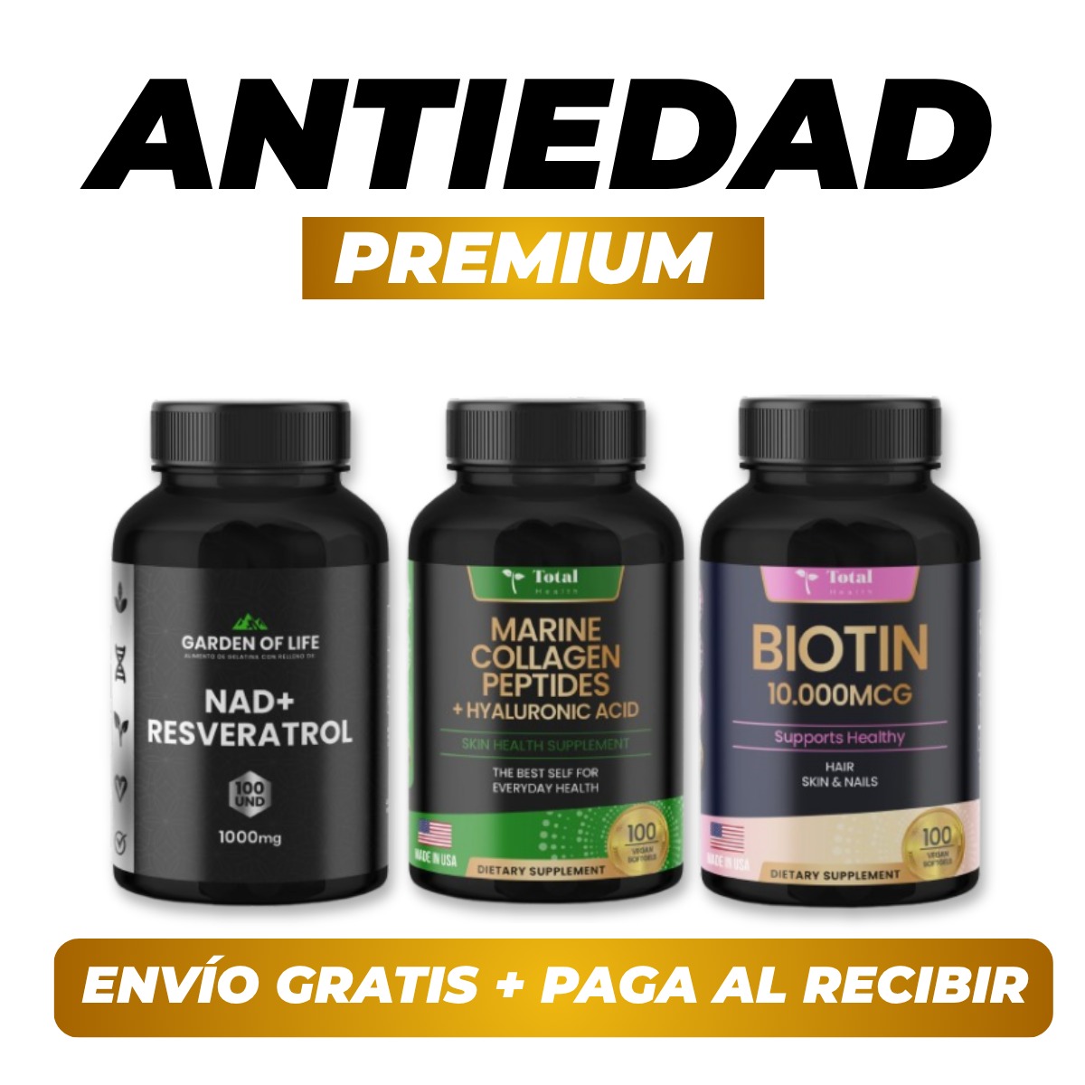 La combinación de estos tres suplementos crea una sinergia integral que trabaja desde adentro hacia afuera, promoviendo belleza, energía, salud celular y bienestar completo.
