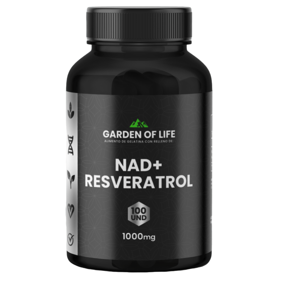 El NAD+ Resveratrol Garden of Life potencia la energía celular, combate el estrés oxidativo y contribuye a un envejecimiento saludable, apoyando funciones metabólicas y vitalidad general.