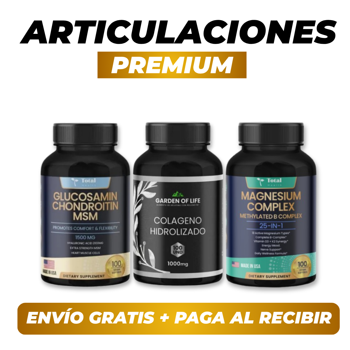 Glucosamina + Condroitina + MSM: apoyo completo para articulaciones, ayudando a reducir dolor, inflamación y mejorar la movilidad.