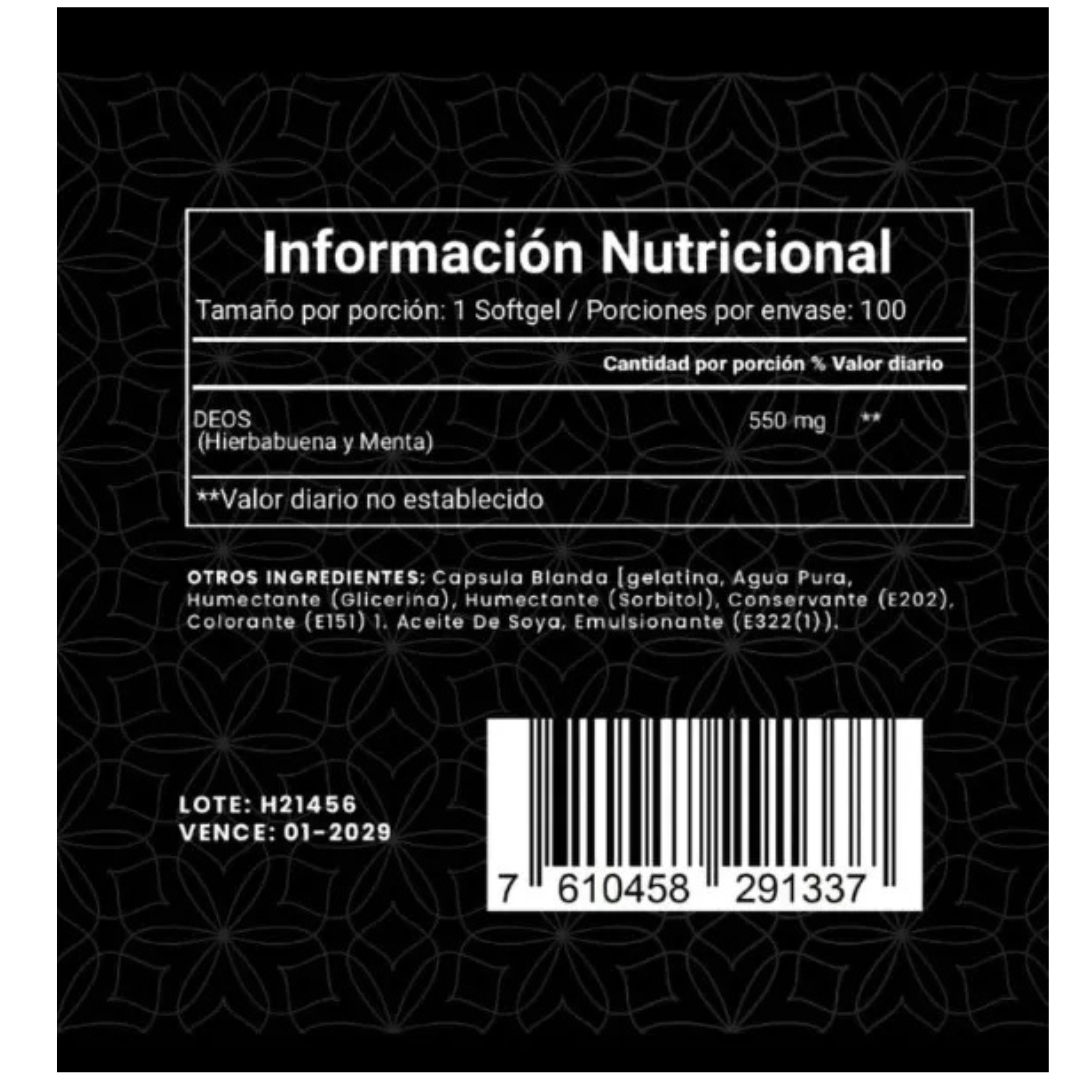El Deos (Hierbabuena y Menta) complementa el kit con su acción refrescante y digestiva, ayudando a reducir gases, mejorar la digestión y neutralizar el mal aliento desde el origen digestivo.