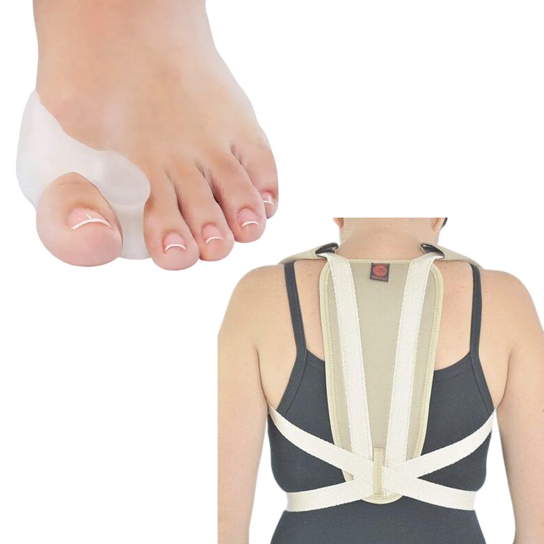 El Combo Corrector de Juanete + Corrector de Postura es una solución integral para el cuidado de tus pies y columna. El corrector de juanete ayuda a alinear el dedo gordo, reducir la presión y aliviar el dolor, mientras que el corrector de postura realinea la espalda y hombros, mejorando la posición corporal y previniendo problemas musculoesqueléticos. Ideal para quienes buscan confort, prevención y salud en su día a día.