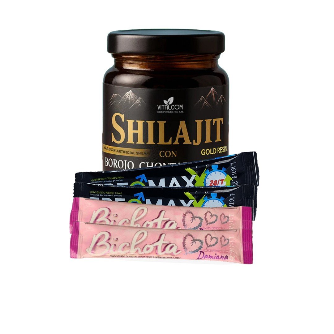 El Combo Genial Shilajit 125 es una poderosa bebida líquida revitalizante elaborada con Shilajit, Borojó, Chontaduro y Maca, superalimentos conocidos por su capacidad para mejorar el rendimiento físico y mental, fortalecer el sistema inmunológico y promover el equilibrio general.