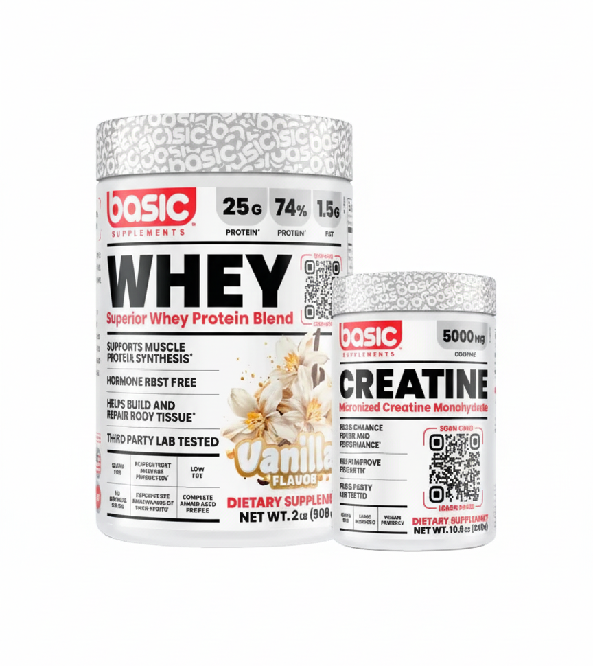 El Combo Whey Basic + Creatina Basic ha sido diseñado para quienes buscan maximizar su rendimiento físico, aumentar la masa muscular magra y acelerar la recuperación después del entrenamiento. Este combo combina una fuente de proteína de alta calidad con uno de los suplementos más estudiados y efectivos del mundo deportivo: la creatina monohidratada.
