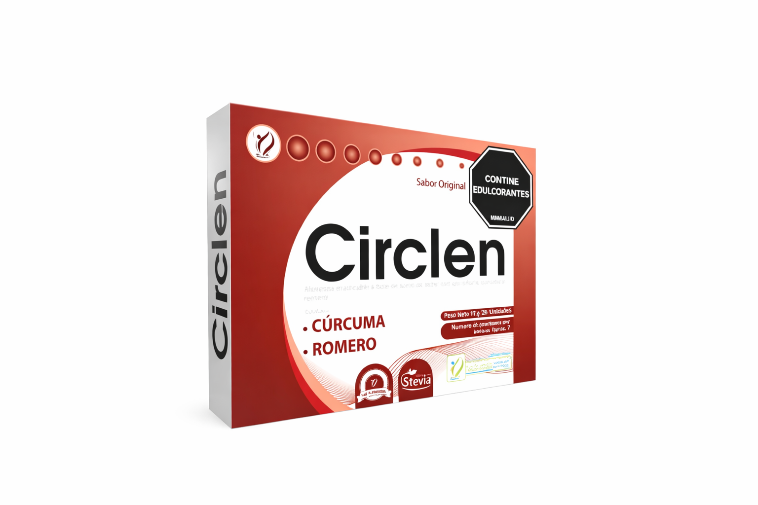 Circlen es un alimento funcional en formato masticable, elaborado a base de suero de leche enriquecido con cúrcuma y romero, ingredientes naturales reconocidos por sus propiedades antioxidantes y antiinflamatorias. Está diseñado para promover el bienestar integral del organismo, actuando como un aliado saludable para complementar tu dieta diaria.